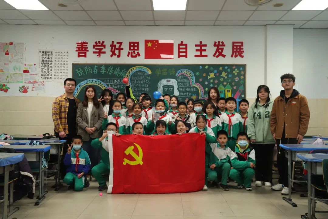 为学习宣传贯彻党的二十大精神,进一步落实“大中小幼”思政一体化建设,提升学生爱国热情,3月15日,材料学院本科生党员走进西青区中北小学四年级,以“激发爱国热情,立志科技报国”为主题,开展科技报国英雄人物故事分享以及材子科普进校园活动。