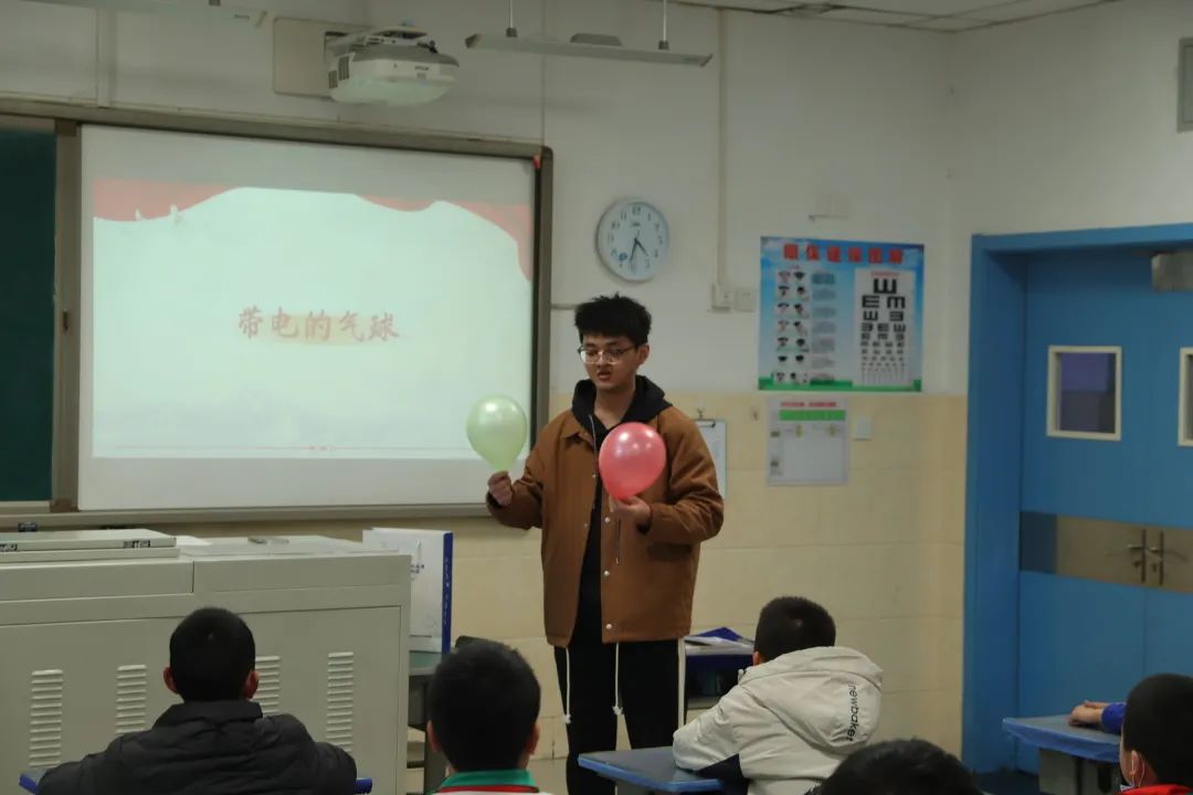 为激发小学生们对科学的兴趣和热爱,培养他们的科学思维和实践能力。学生党员还带领小学生们用生活中常见的小物品进行了科学小实验:“大力水手”和“带电的气球”。在大学生的帮助下,小学生亲自参与到实验中,通过实验的方式来感受实验现象,领悟实验原理。小学生们非常兴奋地参与了每个实验,他们通过亲身实践的方式,更加深入地理解了科学知识。